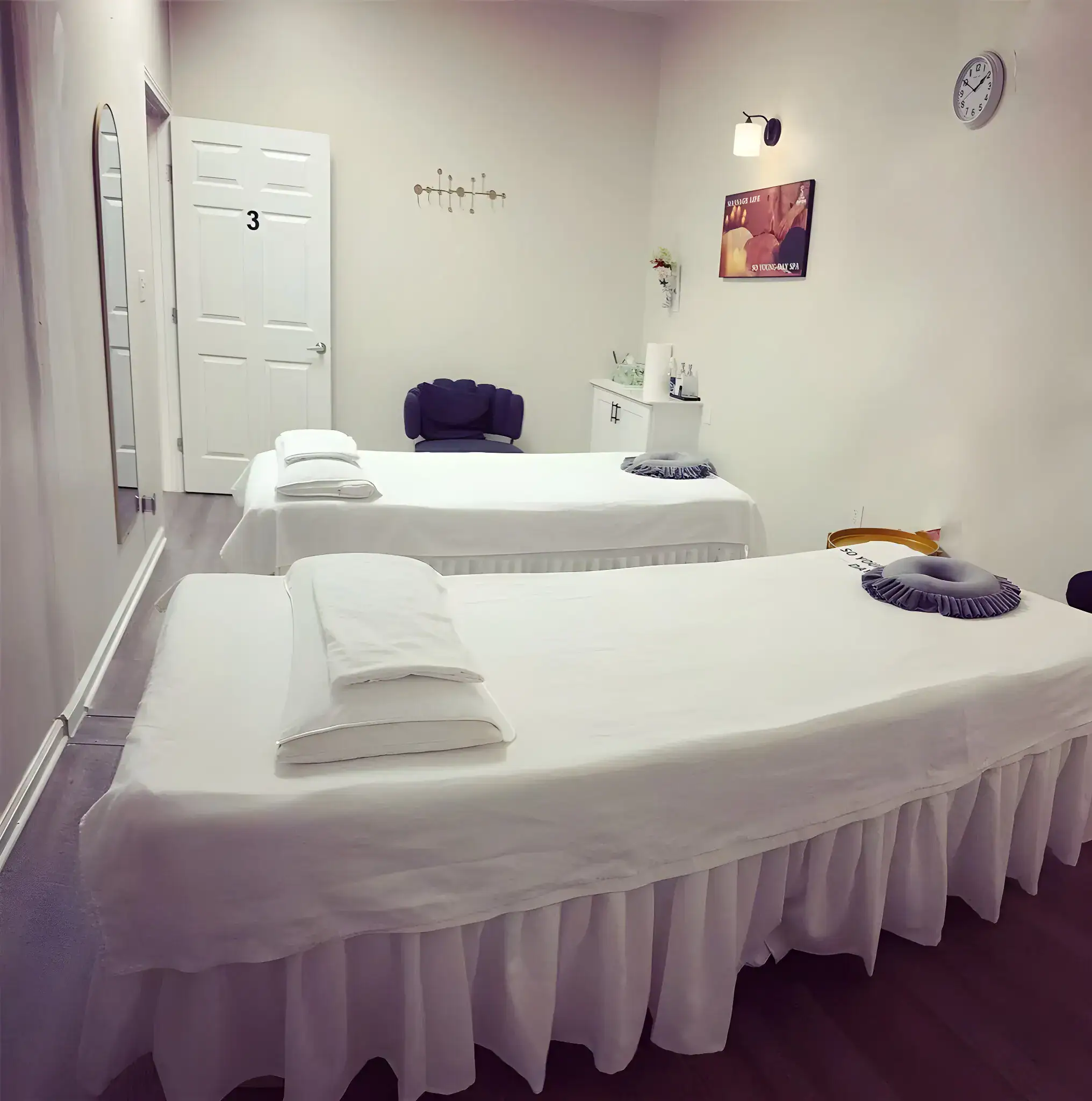 So Young Day Spa offers a full range of massage therapy services for both relaxation and targeted muscle recovery.
